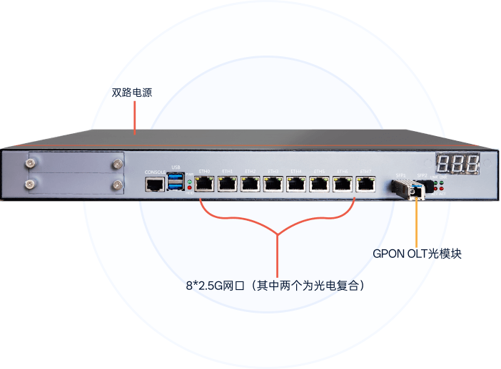 GPON,支持1:32分光(默认配置1个,可加1个)
