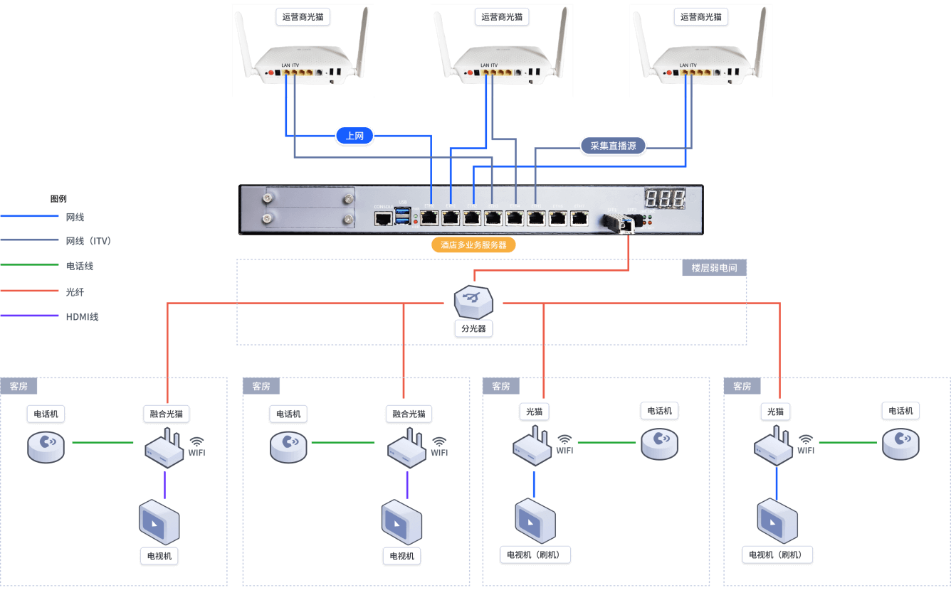 | 互动电视系统 | 提供智慧IPTV及私密投屏服务(内置酒店互动电视融合版) | |