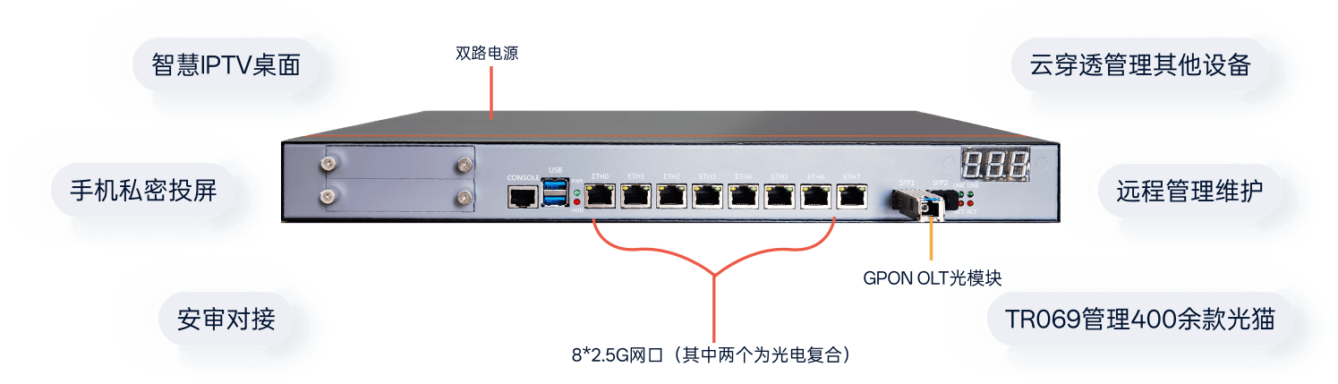 | OLT棒 | GPON,支持1:32分光(默认配置1个,可加1个) | |